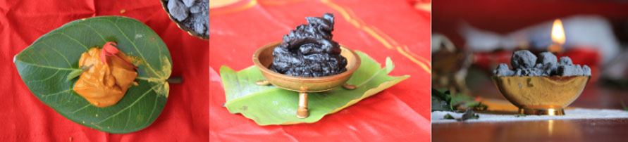Mashi – black colour tilak also use in eyebrows n in hair. Different tilak are made by different rare items